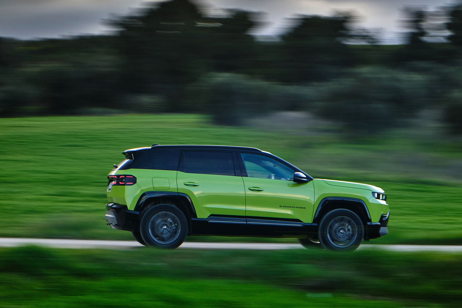 Παρά δε τον πιο σύγχρονο και hi-tech προσανατολισμό του, το Compass εξακολουθεί να διατηρεί τα χαρακτηριστικά που συνδέονται διαχρονικά με τη Jeep. Η απόσταση από το έδαφος φτάνει τα 20 εκατοστά, ενώ οι χαρακτηριστικές γωνίες προσέγγισης, ράμπας και αναχώρησης διαμορφώνονται στις 20, 15 και 26 μοίρες αντίστοιχα, εξασφαλίζοντας αξιόλογες δυνατότητες εκτός δρόμου. Παράλληλα, ιδιαίτερη προσοχή έχει δοθεί και στην αεροδυναμική, με βελτιστοποιημένη ροή αέρα γύρω και κάτω από το αυτοκίνητο, καθώς και ενεργή γρίλια στον εμπρός προφυλακτήρα.