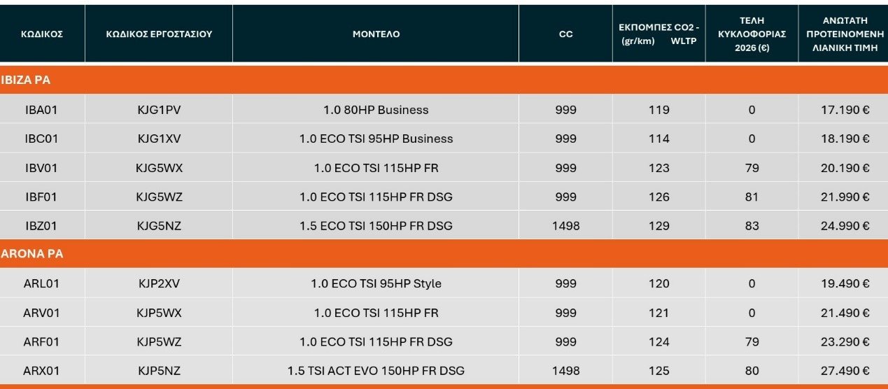 Με την ανανέωση των Ibiza και Arona, η SEAT ενισχύει την παρουσία της στην ελληνική αγορά, παρουσιάζοντας μοντέλα που συνδυάζουν μοντέρνα σχεδίαση, αποδοτική τεχνολογία, πλούσιο εξοπλισμό και ανταγωνιστική σχέση τιμής–αξίας.