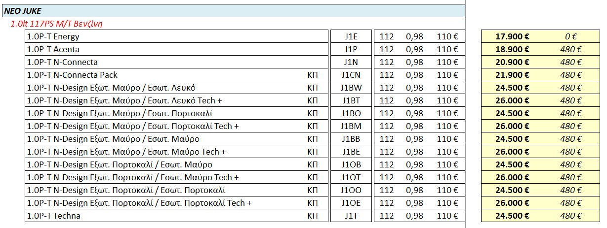 Σε πέντε επίπεδα εξοπλισμού, τα Energy, Acenta, N-Connecta, N-Design και Techna, και με τιμή εκκίνησης τα 17.900 ευρώ ξεκινά την καριέρα του στα τέλη της χρονιάς στη χώρα μας το ολοκαίνουργιο Nissan JUKE στην Ελλάδα.