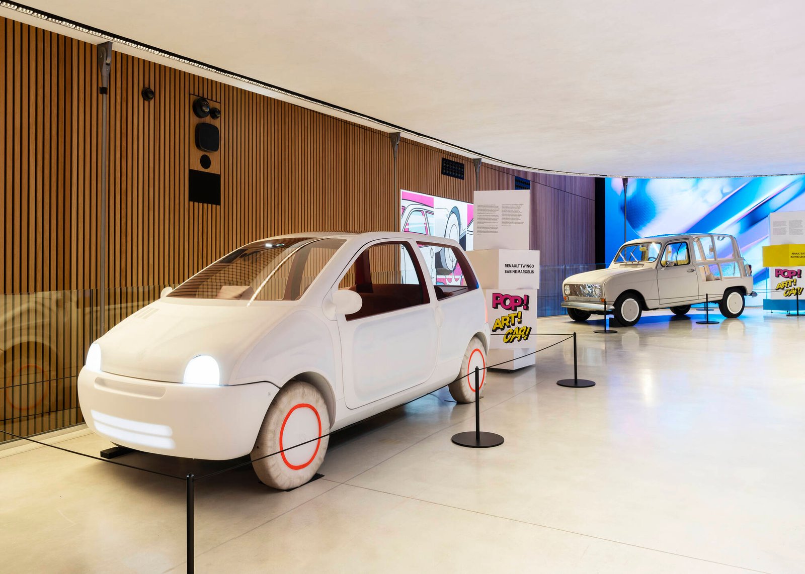 Ωστόσο, το πιο ενδιαφέρον κομμάτι της έκθεσης είναι ο τρόπος με τον οποίο το ίδιο το αυτοκίνητο μετατρέπεται σε έργο τέχνης. Στην ειδικά διαμορφωμένη Carwalk ramp παρουσιάζονται πρωτότυπα και show cars που λειτουργούν ως εικαστικές επανερμηνείες εμβληματικών μοντέλων της Renault.
