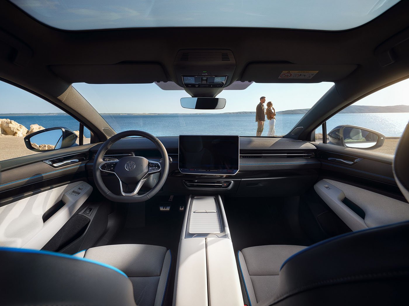 Tο ID.7 προσφέρει επιλογές εξοπλισμού που κατά τα άλλα υπάρχουν μόνο στις ανώτερες κατηγορίες των premium ανταγωνιστών. Η νέα πανοραμική ηλιοροφή δεν είναι μόνο εντυπωσιακή, αλλά διαθέτει και άνετο χειρισμό είτε με ένα πέρασμα του χεριού (swipe) ή μέσω φωνητικού ελέγχου, και ρυθμίζεται ώστε να είναι διαφανής ή μη. Η διαπερατότητα φωτός λειτουργεί μέσω ηλεκτροχρωματικής τάσης.