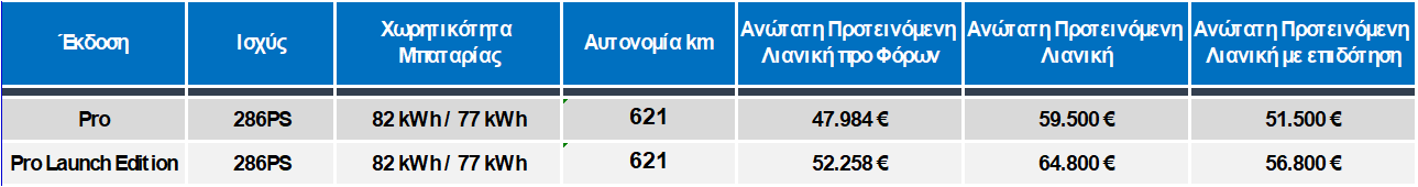 * Η τιμή περιλαμβάνει την κρατική επιδότηση «Κινούμαι Ηλεκτρικά 2» των 8.000 ευρώ