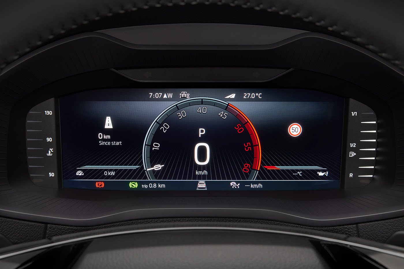 Το ανανεωμένο Karoq προσφέρει ένα εντυπωσιακό ψηφιακό εσωτερικό, με τον πίνακα οργάνων “Virtual Cockpit” να έχει μέγεθος 8 ή 10,25 ιντσών. Τα κορυφαία συστήματα Infotainment είναι ΜΙΒ τρίτης γενιάς και προσφέρουν χειρισμό μέσω οθόνης αφής από 6,5 έως 9,2 ίντσες ή/και φωνητικό έλεγχο και σε κάποιες εκδόσεις μόνιμη σύνδεση στο διαδίκτυο ενώ οι ενημερώσεις λογισμικού εγκαθίστανται “over the air”.