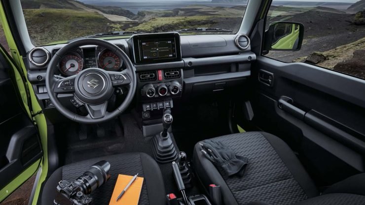 Το εσωτερικό είναι θα λέγαμε ότι αυτό που πρέπει να είναι, λιτό αλλά κατασκευασμένο από ανθεκτικά υλικά, με εξοπλισμό που όχι μόνο δεν έχει ελλείψεις, αλλά ακόμα και στην βασική έκδοση (GL) είναι υπερπλήρης έως πλούσιος. Αδύνατο σημείο του Jimny οι περιορισμένοι χώροι για τους πίσω επιβάτες και το πρακτικά ανύπαρκτο πορτμπαγκάζ, γεγονός που σε αναγκάζει να ρίχνεις τις πλάτες των πίσω καθισμάτων, κάθε φορά που θέλεις να μεταφέρεις κάτι, ακόμα και αν πρόκειται για τα ψώνια του σούπερ μάρκετ.
