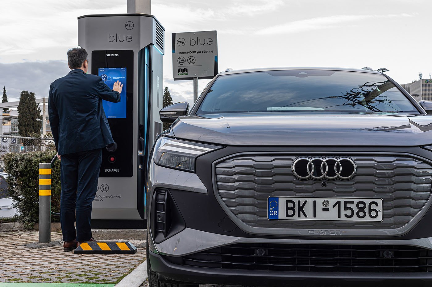 Πρόκειται για τους πλέον ισχυρούς υπερφορτιστές ηλεκτρικών αυτοκινήτων που έχουν εγκατασταθεί μέχρι στιγμής σε αστικό περιβάλλον στην Ελλάδα, δίνοντας τη δυνατότητα σε οδηγούς ηλεκτρικών αυτοκινήτων, κάθε μάρκας και όχι μόνο της Audi, να φορτίσουν εξαιρετικά γρήγορα. Πρακτικά, αυτό σημαίνει ότι για παράδειγμα ένα Q4 e-tron, το νέο compact ηλεκτρικό SUV της Audi, μπορεί σε μόλις 10’ της ώρας να φορτίσει με αρκετή ενέργεια ώστε να διανύσει απόσταση 130 χιλιομέτρων. Κάθε υπερφορτιστής έχει δύο θέσεις φόρτισης με συνεχές ρεύμα (DC) και μία θέση φόρτισης εναλλασσόμενου ρεύματος (AC), για φόρτιση plug-in υβριδικών μοντέλων.